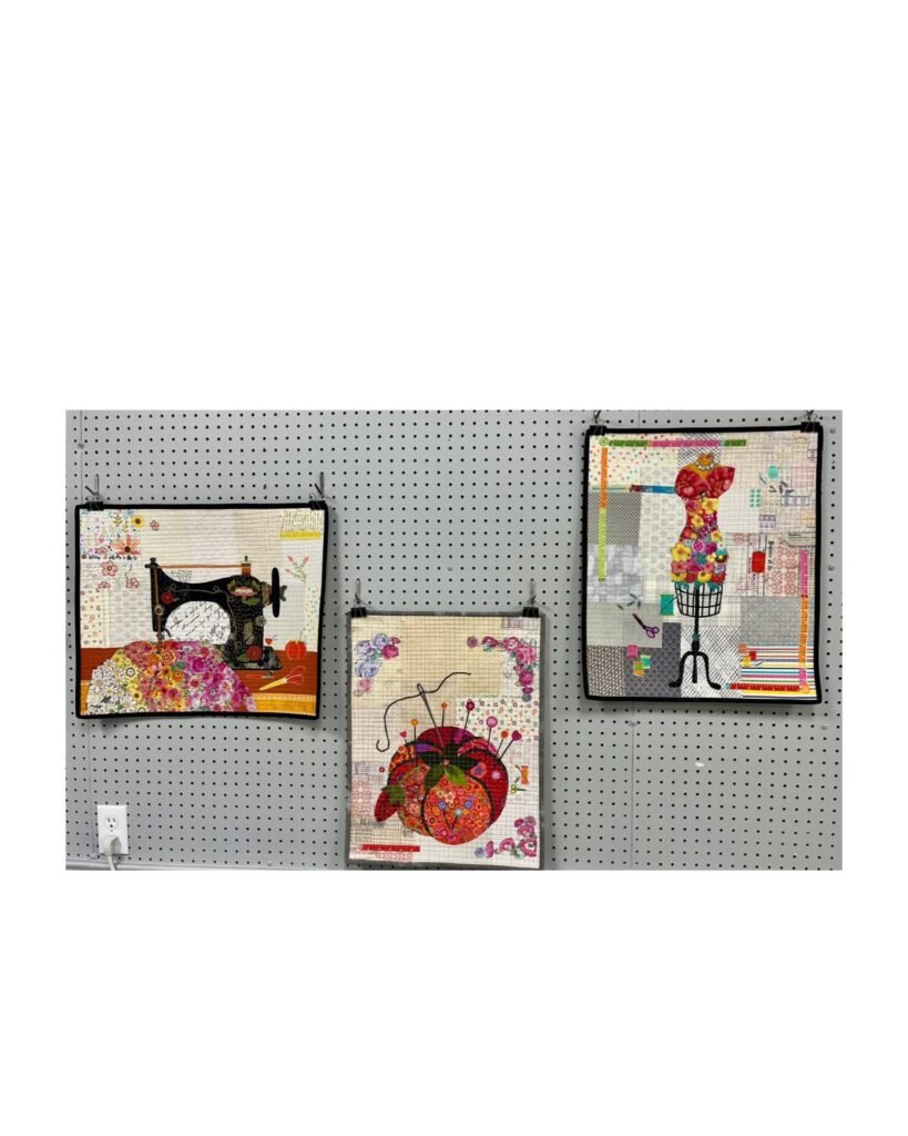 We will be doing a Laura Heine Collage Class. This pattern has all three of these designs choose one of your choice to do in class. These are wonderful projects…